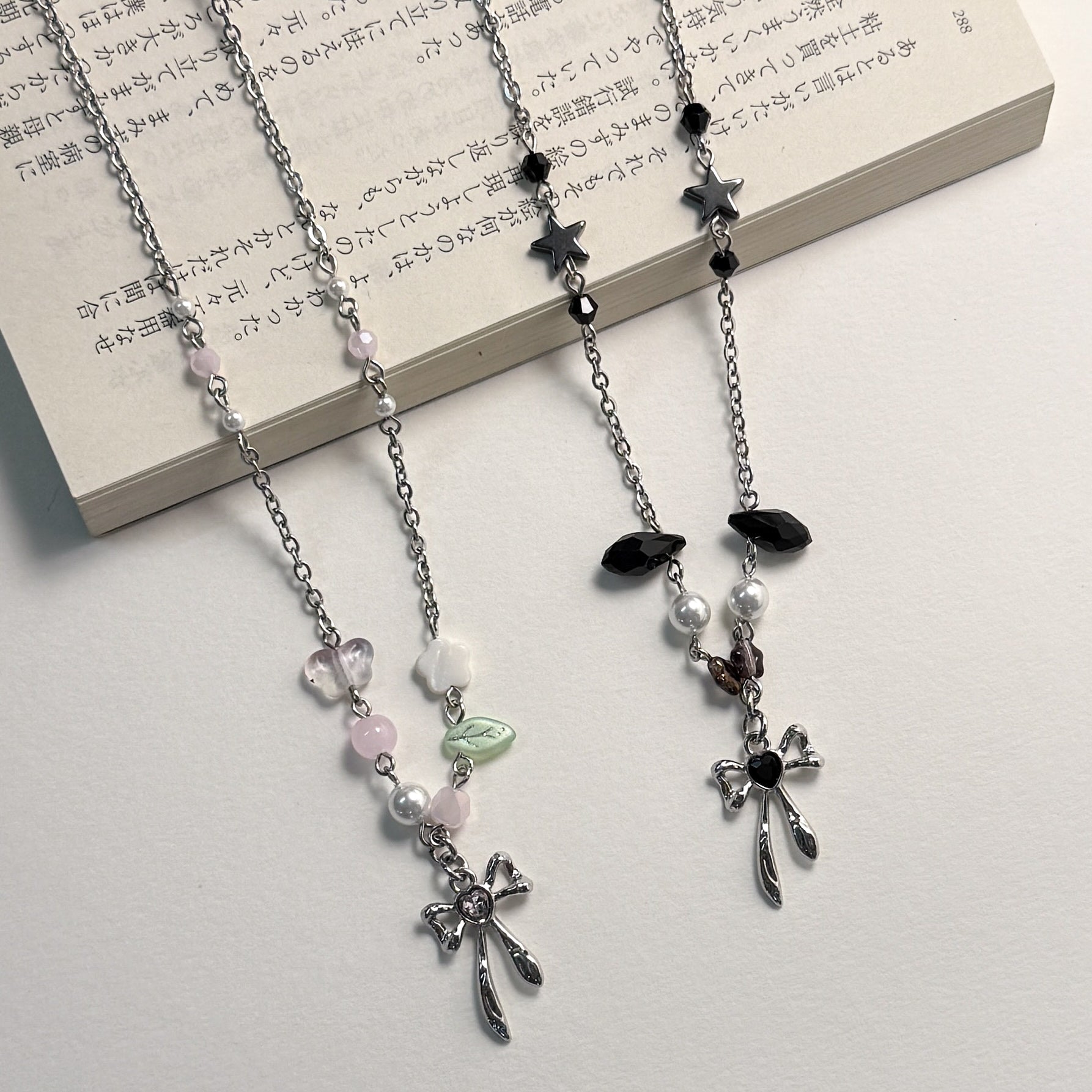 Material : Stainless steel necklace, beads , glass beads and alloy charm.